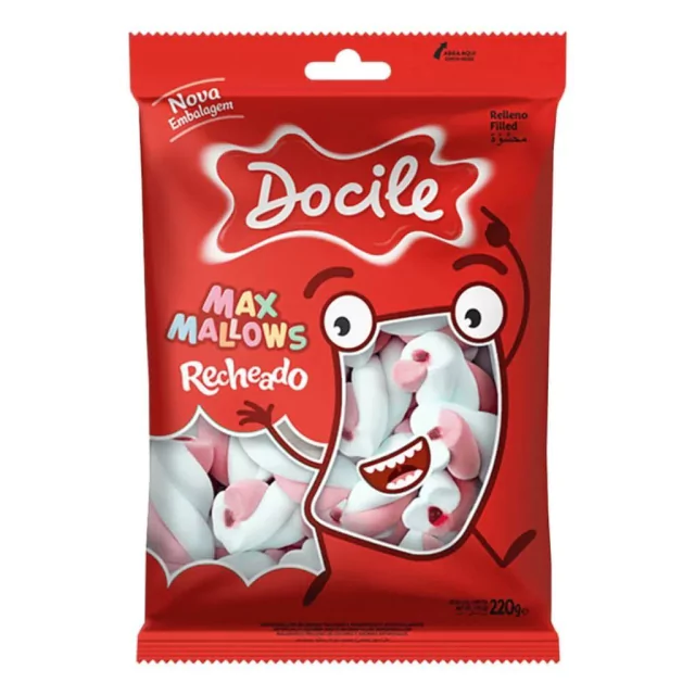 Marshmallow rosa e branco sabor baunilha com recheio de gelatina de morango. Ainda mais gostoso! Embalagem de 220g com aproximadamente 30 unidades.